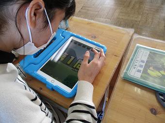6年生が、課題が終わった隙間時間に、タブレットを使って習熟学習を行っていました。