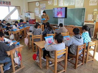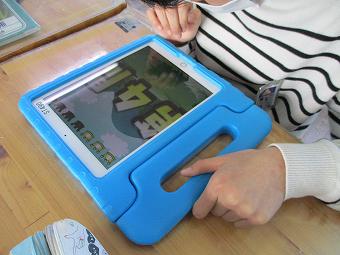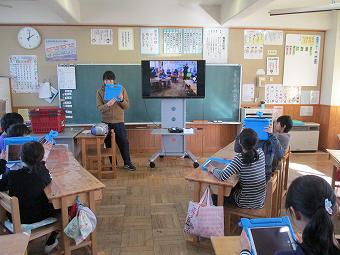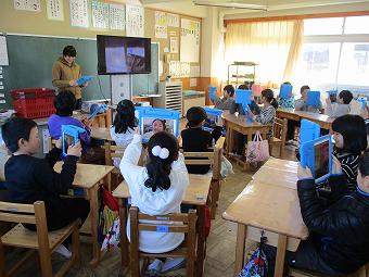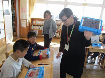 4年生が総合の時間にタブレットを使って授業を行いました。今回は、タブレットに慣れながら、自分なりのストーリーを作って、みんなを笑顔にすることをねらいとしています。どの子も、初めてにもかかわらず、どんどん操作に慣れ、終わる頃には、思い思いのストーリーを作っていました。
