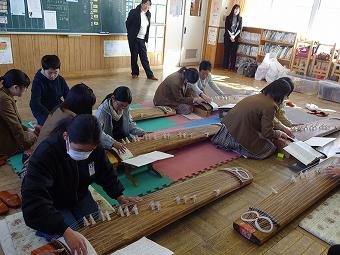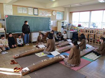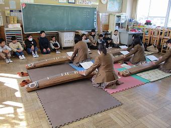 5年生が作新学院高等部琴部の生徒さんをお迎えして、邦楽演奏会を行いました。琴の素晴らしい演奏を聴いたり、実際に琴の弾き方を教えていただいたりました。最後の振り返りでは、「初めて琴に触れ、最初は難しかったけれど、作新学院の生徒さんが優しく教えてくださったので、少し弾けるようになりました。楽しかったです」といった感想が多くありました。作新学院の皆様、ボランティアの皆様、大変ありがとうございました。