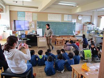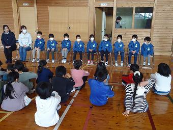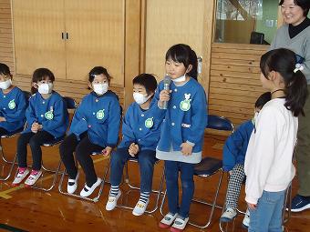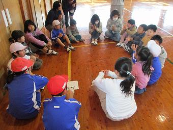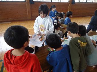1・2年生が保育園の児童と交流会を開きました。来校したみなみ保育園の年長さんに、1年生の生活の様子を紹介したり、2年生が用意したいろいろなゲームをやったり、と、楽しい時間を共に過ごしました。来年度本校に入学する児童も含め、子供同士、瞬く間に仲よくなり、笑顔溢れる交流となりました。みなみ保育園の皆様、大変ありがとうございました。