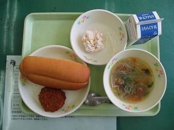 給食は、セルフクリームサンド、牛乳、メンチカツ、肉団子スープでした。