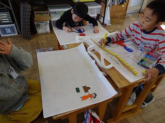 1年生が図工で「夢の町、三丁目」という学習を行いました。自分の町を作る学習です。どの子も夢中になって自分の夢の町を制作していました。