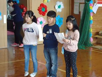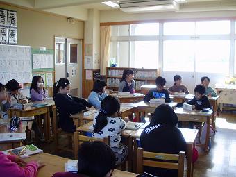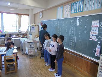 KLVの方が低学年に読みきかせをしてくださいました。今回は「グリム童話」から「一つ目、二つ目、三つ目」という不思議なお話です。どの子も夢中になって、お話の世界に入り込んでいました。「いろいろ違うことは個性で、そのことで人にいじわるしてはいけない」というお話に込められたメッセージを子供たちは、しっかり受け取ったようでした。