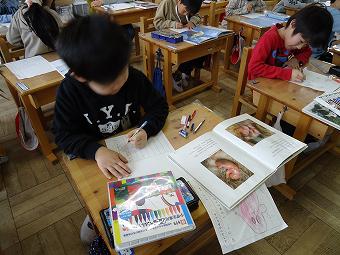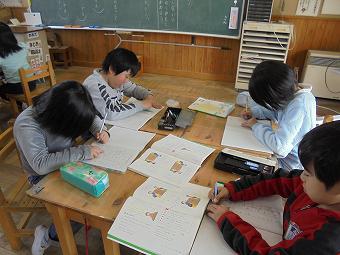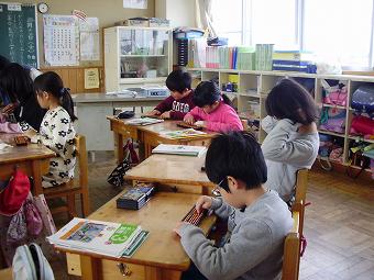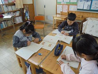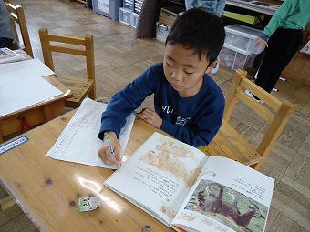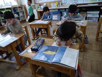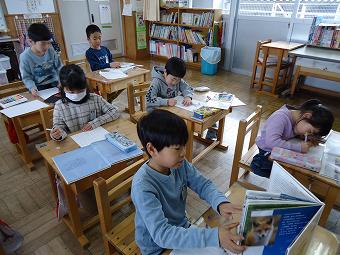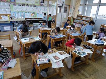 1年生が国語で「動物の赤ちゃん図解」づくりを行いました。自分で調べ、まとめ、発表する学習です。どの子も黙々と作業をし、自分の図鑑づくりに夢中でした。