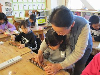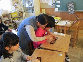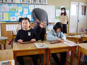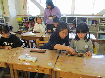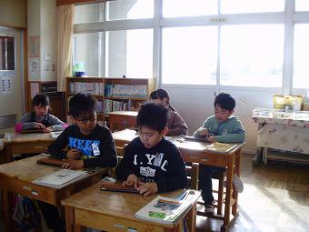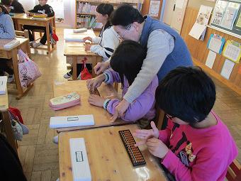 3年生と4年生が、地域のボランティアティーチャーをお迎えして、そろばんを学びました。3年生は玉の動かし方や10までの足し算、引き算を、4年生は、小数点のある数字の足し算、引き算をそれぞれ教わりました。どの子も意欲的、一生懸命、そろばんに取り組んでいました。来校いただき、教えていただきました地域の方には感謝の気持ちでいっぱいです。ありがとうございました。
