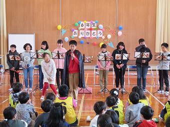 6年生を送る会を開きました。今までたくさんのスマイルとハッピーを楡小に運んでくれた素晴らしい6年生も、あと少しで卒業です。5年生を中心に、これまでの感謝の思いをどう伝えたらよいかを考え、プレゼントを作ったり、会場を飾ったり、色紙を作ったり、ゲームを考えたり、と、一生懸命に準備をしてきました。なかよし班ごとに楽しくゲームをしたり、プレゼントを贈呈したり、また、6年生から歌や合奏を贈り物をもらったり、と、楽しくも充実した時間をみんなで過ごしました。6年生、これまで本当にありがとう。そしてこれからもよろしくお願いします。