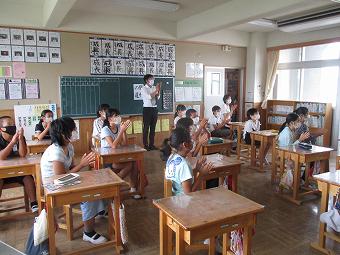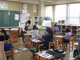 今年度から正式に5,6年生の外国語科がスタートしました。ALTの先生も交え、6年生が、互いにあいさつをし合ったり、ジョリーフォニックスを行ったり、映像を見て、状況を話し合ったりしました。どの子も、楽しそうに、意欲的に学習していました。