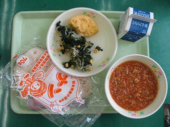 給食は、ナン、キーマカレー、オムレツ、ほうれん草ともやしサラダ、牛乳でした。