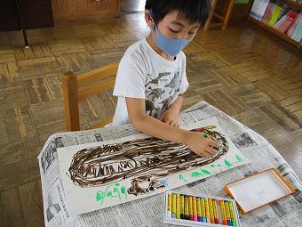 1年生が図工で、「ながーいかみから」の学習をしました。長い紙に自由な発想で絵を描いていきます。どの子も集中して取り組んでいました。