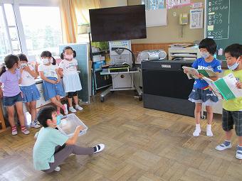 1年生が国語で「おむすびころりん」の音読劇を行いました。どの子も一生懸命、楽しそうに演じていました。