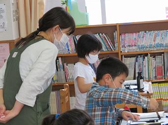 3年生が書写の学習を行いました。保護者ボランティアの方も参加いただき、「おれ」の書き方を学びました。どの子も、先生に聞いたり、ボランティアの方に教わったり、自分で工夫したりしながら、納得のいく字を完成させていました。