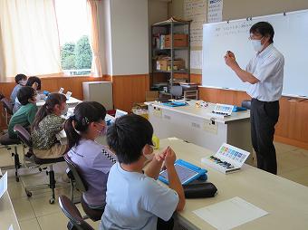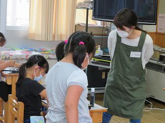 6年生の理科で、葉の蒸散の学習を行いました。顕微鏡を見る順番の場所に印をつけたり、ICTを効果的に使ったりして、感染症対策を施しながら、授業を行いました。子供たちは、とても意欲的に自分の考えを述べていました。先輩の授業ということで、他学年の先生も参観に来ていました。