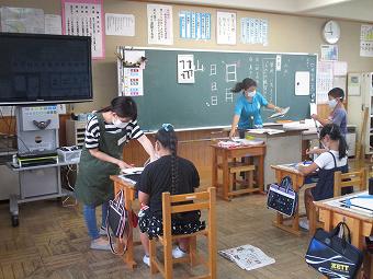 3年生が書写の学習を行いました。保護者ボランティアの方も参加いただき、「おれ」の書き方を学びました。どの子も、先生に聞いたり、ボランティアの方に教わったり、自分で工夫したりしながら、納得のいく字を完成させていました。