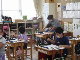 コロナ感染症防止対策としては、楡木小感染症防止マニュアルにしたがって、さまざまな取組をしていますが、ハード面では、冷房、扇風機、サーキュレーターの効果的活用を行っています。子供たちの安全・安心を守るために、全校で感染症防止対策に取り組んでいます。
