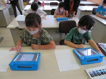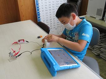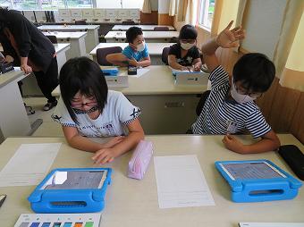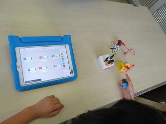 4年生がプログラミングの学習をしました。ソニーのMESHというセンサーを使って、「プログラミングとは、コンピュータに命令すること」だということを知り、論理的に考える力を養いました。どの子も、楽しく夢中にプログラミングを学んでいました。