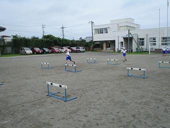 4年生が体育でハードル走を行いました。走力とともに身体の調整力も養います。どのような姿勢でハードルを走り抜けると記録が伸びるか、それぞれが工夫しながら何度も挑戦していました。