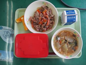 給食は、ごはん、肉丼、冬瓜の味噌汁、オレンジ、牛乳でした。またホームページが44万回になりました。これからも本校ホームページをどうぞよろしくお願いします。