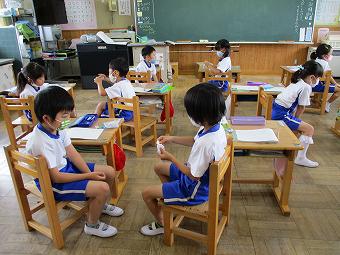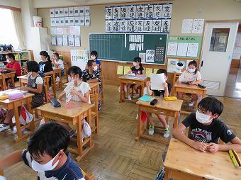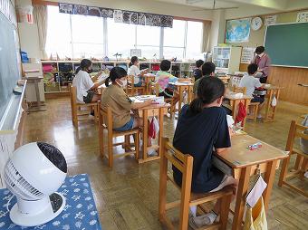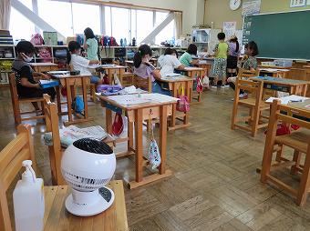 コロナ感染症防止対策としては、楡木小感染症防止マニュアルにしたがって、さまざまな取組をしていますが、ハード面では、冷房、扇風機、サーキュレーターの効果的活用を行っています。子供たちの安全・安心を守るために、全校で感染症防止対策に取り組んでいます。