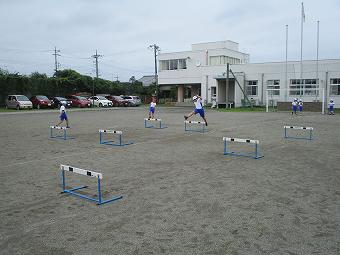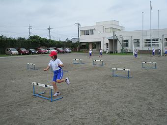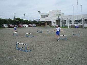 4年生が体育でハードル走を行いました。走力とともに身体の調整力も養います。どのような姿勢でハードルを走り抜けると記録が伸びるか、それぞれが工夫しながら何度も挑戦していました。