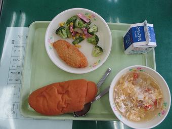給食は、ミルクパン、ささみチーズフライ、イタリアンサラダ、トマトスープ、牛乳でした。