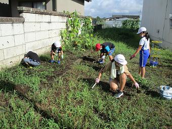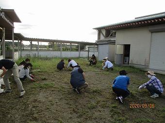 朝の除草を行いました。どの子も一生懸命活動していました。
