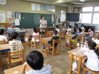 1学期は出来なかった楡木KLVさんの読みきかせが始まりました。大型絵本をもってきてくださり、2年生のクラスで読みきかせをしてくださいました。子供たちはひさしぶりの読みきかせに目を輝かせながら物語の世界に入りこんでいました。