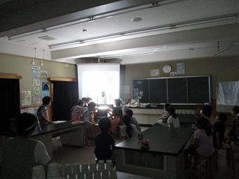 1年生の歓迎影絵を行いました。楡木KLVのみなさんが千葉省三の世界を見事な自作影絵にしてくださり、歓迎の気持ちをこめて、1年生に上演してくださいました。どの子も瞬く間に影絵の世界に入り込んでいました。