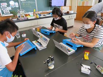 6年生が理科の時間にプログラミングの学習を行いました。電気の効率的な利用を図る技術にもプログラミングの技術が活用されていることを学んだり、プログラミング教材を通して論理的に考えていくことなどを学びました。