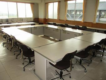 タブレットの導入によって、パソコン室を会議室に模様替えしました。これから地域の方々をお迎えしたり、授業研究をしたり、といった用途で使用していきます。