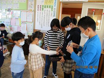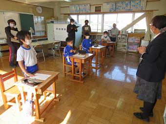 10月いっぱいで退職される事務の先生のお別れ式を行いました。清掃や休み時間などでのふれあいの思い出、事務職として学校を支えてくださったお礼などを6年生の代表児童が発表し心からの感謝を表しました。これまで本当にありがとうございました。