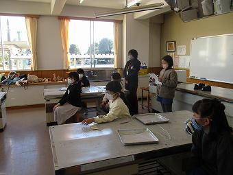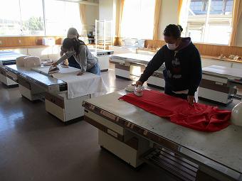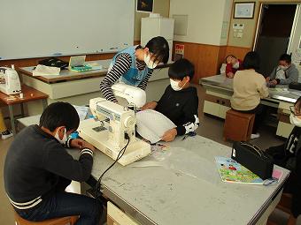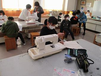 5年生が家庭科で、ナップザックづくりを行いました。いよいよ佳境に入り、どの子も仕上げに取り組んでいました。