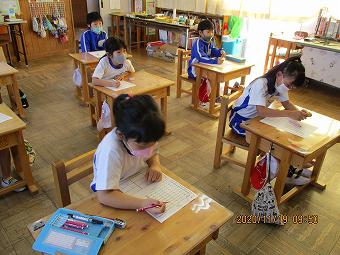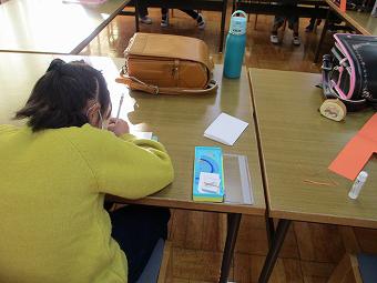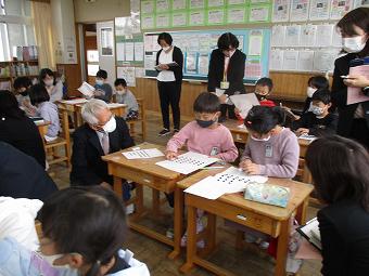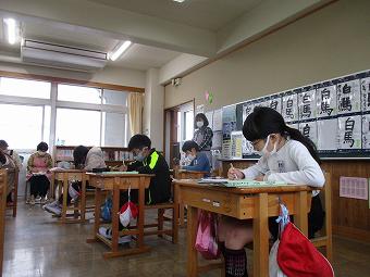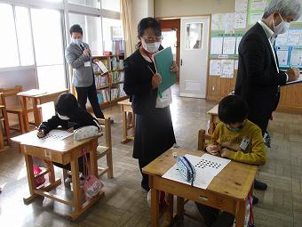 3年生の書写の時間に保護者ボランティアの方が来て下さいました。どの子も真剣に筆を走らせていました。