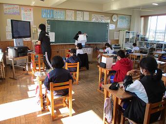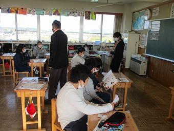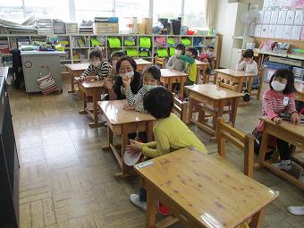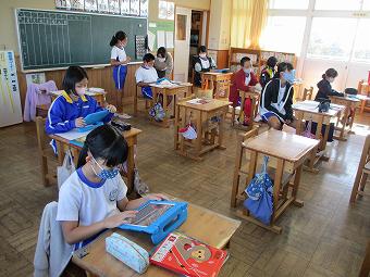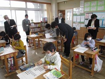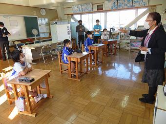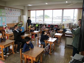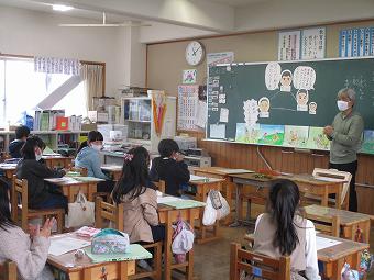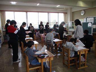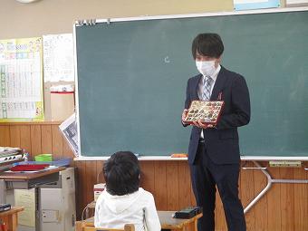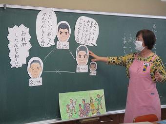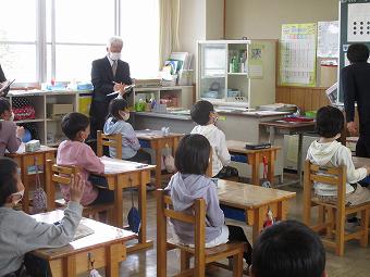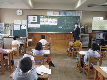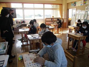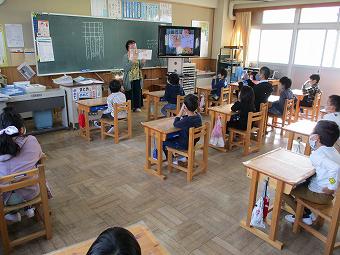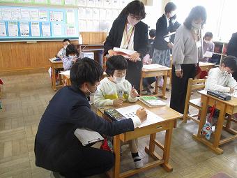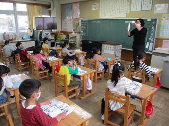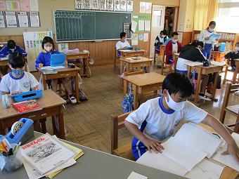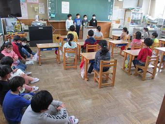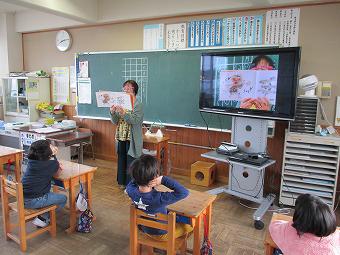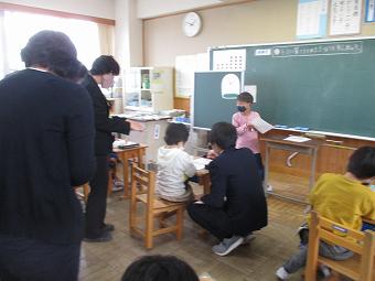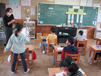 3年生が1年生の教室に出向き、読みきかせを行いました。3年生にとっては、相手意識をもって読みきかせをすることで、また1年生は物語に触れることで、国語の力を高める取組です。3年生も1年生も、真面目に、一生懸命学習していました。