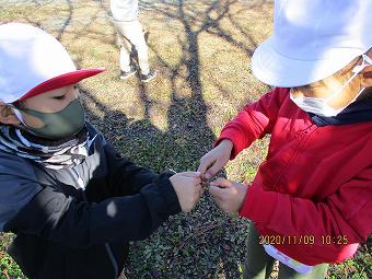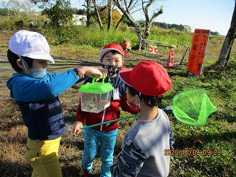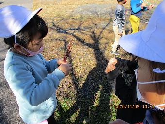1年生が生活科「秋を探そう」で、近くの南押原コミュニティフィールドにいってきました。晴れ渡る秋空のもと、どの子も、一生懸命、秋を探していました。