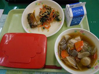 給食は、ご飯、さばスタミナ焼き、即席漬け、さつまいも汁、牛乳でした。