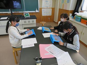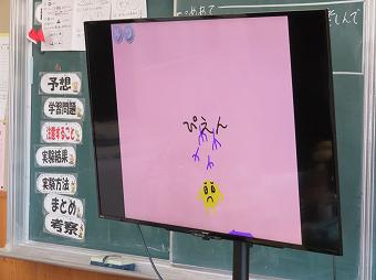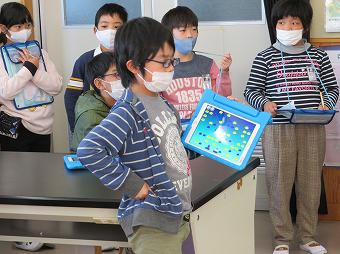 5年生が音楽で、歌の発表とタブレットを使った調べ学習を行いました。ひとり一人、歌の発表を別室で行いながら、同時に山田耕筰についてインターネットで調べ、オクリンクという授業支援ソフトを使って簡単なプレゼンを行いました。どの子も、タブレットを自在に扱い、プレゼンを行っていました。