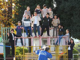 6年生が卒業アルバムの写真撮影を行いました。秋の青空のもと、どの子も爽やかな笑顔を浮かべていました。