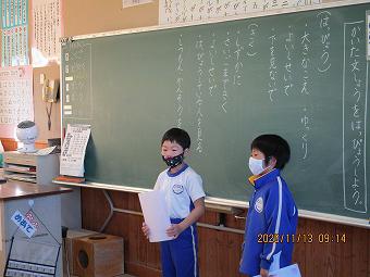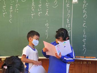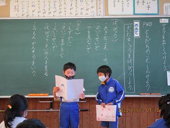 1年生が国語で「友達に知らせたいな」の発表会を行いました。どの子も、自分の思いをしっかりと伝えていました。