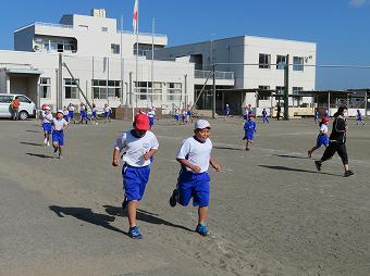 全校持久走練習が始まりました。どの学年も意欲満々で、秋空のもと、一生懸命練習に励んでいました。