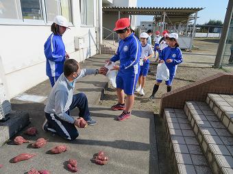 例年、子供たちがとても楽しみにしている、南押原地区青少年健全育成協議会主催イモ植え・イモ掘り・芋煮会行事ですが、今年度はすべて中止となり、役員さんのみでイモを栽培してくださっていました。このたび、役員さんがイモ掘りをしてくださり、全児童に、と学校にもってきてくださいました。子供たちは思わぬプレゼントに大喜びでした。南押原地区青少年健全育成協議会役員の皆様、大変ありがとうございました。