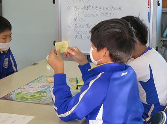 4~6年生が委員会活動を行いました。環境委員会、生活委員会、図書委員会、健康委員会が、それぞれ、学校のために活動しました。環境委員会は、花壇の花植えを、生活委員会は、これまでの活動の見直しを、図書委員会は、しおりづくりを、健康委員会は配膳台の清掃などを行いました。どの委員会も、一生懸命仕事をしていました。