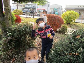 1年生が生活科で落ち葉遊びをしました。落ち葉から形あるものを作る学習です。秋を見つけ季節を感じながら、創造性を高めていました。