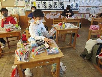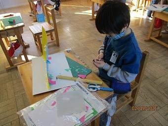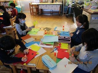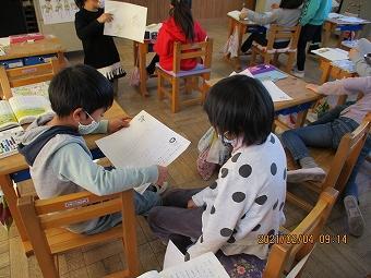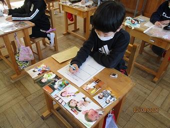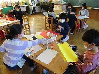 今年度は保育園との交流ができなかったので、1年生が保育園児に向けて、プレゼントを作りました。小学校入学祝いです。また小学校の1日を映したDVDも添えました。4月の入学を楽しみにしています。