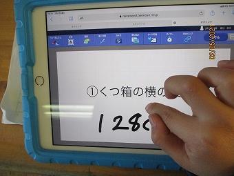 2年生が算数で長さの学習をしました。オクリンクというタブレットソフトを使って、課題に対して自分なりの考えを書き込んでいました。ICT支援員さんにも入ってもらい、算数の学習とともにICTに慣れる学習も同時に行いました。
