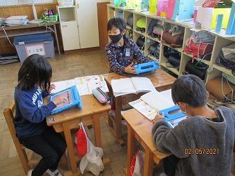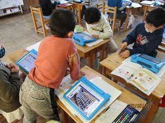 1・2年生がタブレットを操作する学習を行いました。3月までには一人一台のタブレットが導入しれます。今回は2年生が1年生にタブレットの操作や、オクリンクというソフトの使い方などを教えました。教えたり、教わったりすることで、互いに信頼関係をさらに強くしていました。