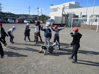1年生が体育で長縄を行いました。最初はタイミングが取れず、なかなか入れない児童もいましたが、先生や友達の励ましで、最後は皆、リズムよく跳ぶことができてきました。どの子も楽しそうに活動していました。