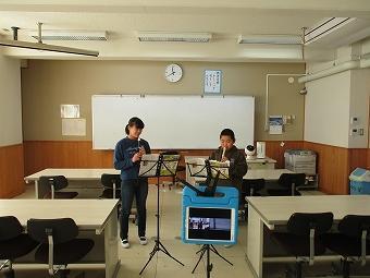 5年生が音楽でリコーダーの発表会を行いました。各自、家で練習してきた曲を発表しました。感染症防止対策のため、別室でひとりでリコーダーを吹き、他の子供たちはズームを使って音楽室で、友達の演奏を試聴しました。どの子も練習の成果を思う存分発揮し、また聴いている子たちも、友達のがんばりに拍手を送っていました。