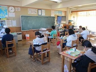 今日の給食は楡木小アイディア献立でした。どのクラスに、静かに、けれどとてもおいしそうに給食を食べていました。