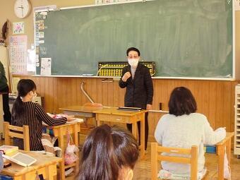 地域の方をお招きして、「そろばん教室」を行いました。そろばんに初めて触れた子もいるなか、ていねいに教えてくださり、子供たちは、そろばんで計算することの楽しさに触れていました。