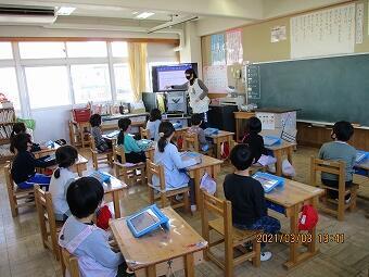 1年生で学習支援員の方が読み聞かせをしました。子供たちはしばし、物語の世界を楽しみました。